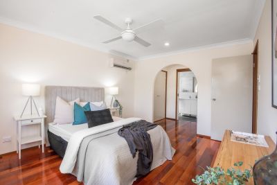 *4 bedrooms with ceiling fans, master with near new ensuite, walk-in-robe and air-conditioning, 3 bedrooms with built-in-robes.